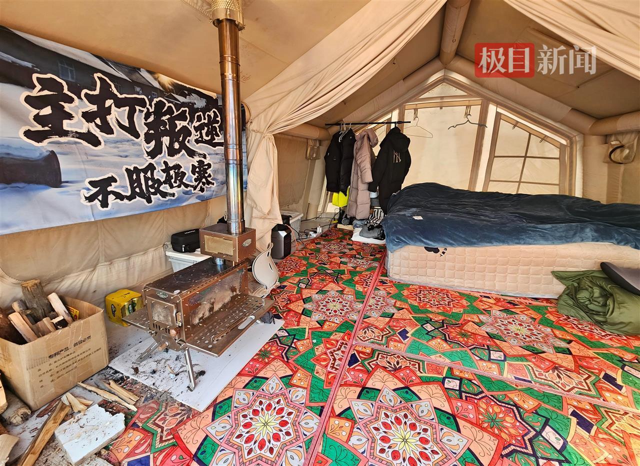 12月初,黑龙江漠河市的平均气温已降到零下30℃,在漠河市桥北自驾营地,20户自媒体博主在室外搭帐子寓居,直播记载零下30℃的露营日子。12月8日,极目新闻记者实地看望,来自陕西的80后“背叛配偶”自驾游来到漠河应战极寒,他们在帐子内放置柴火炉和柴油机取暖,每天直播应战极寒。